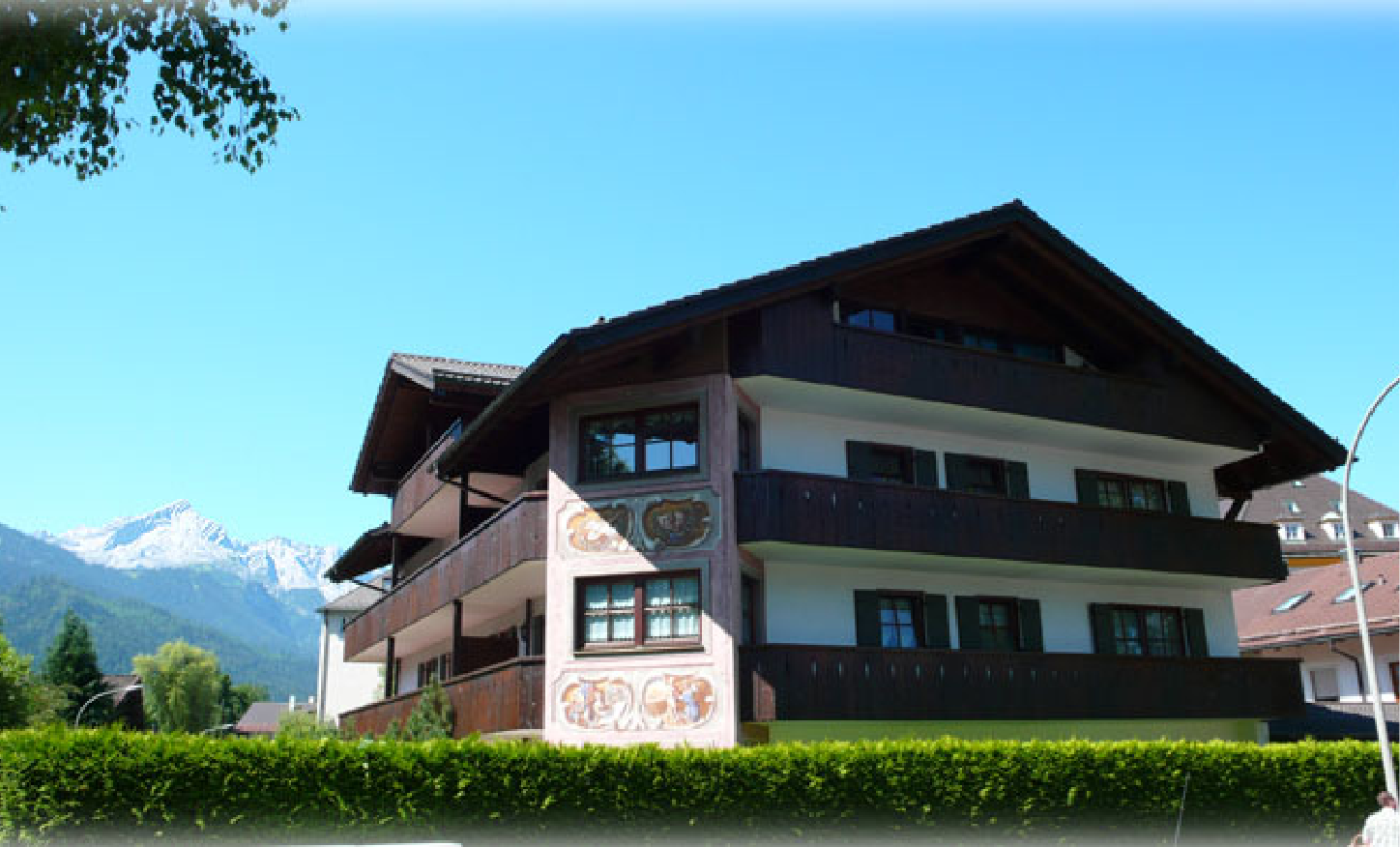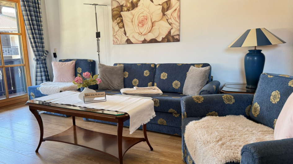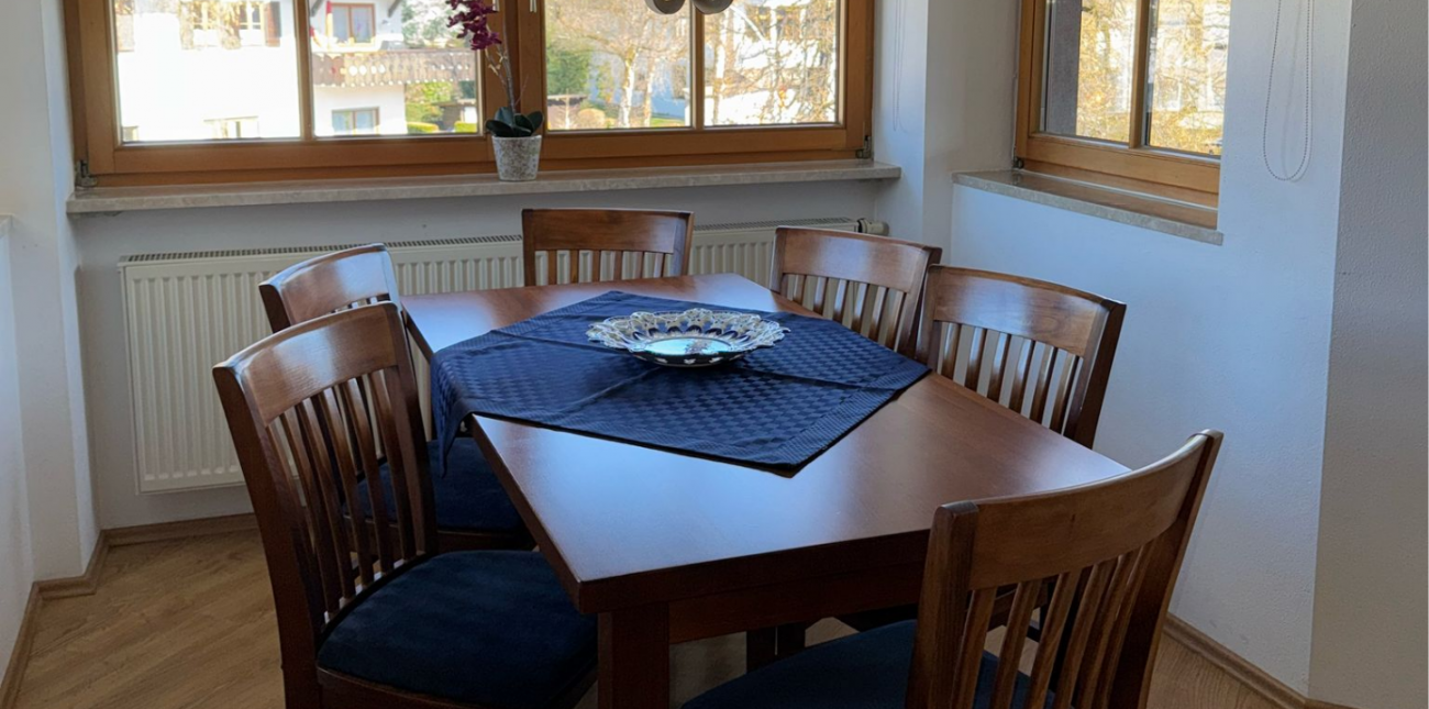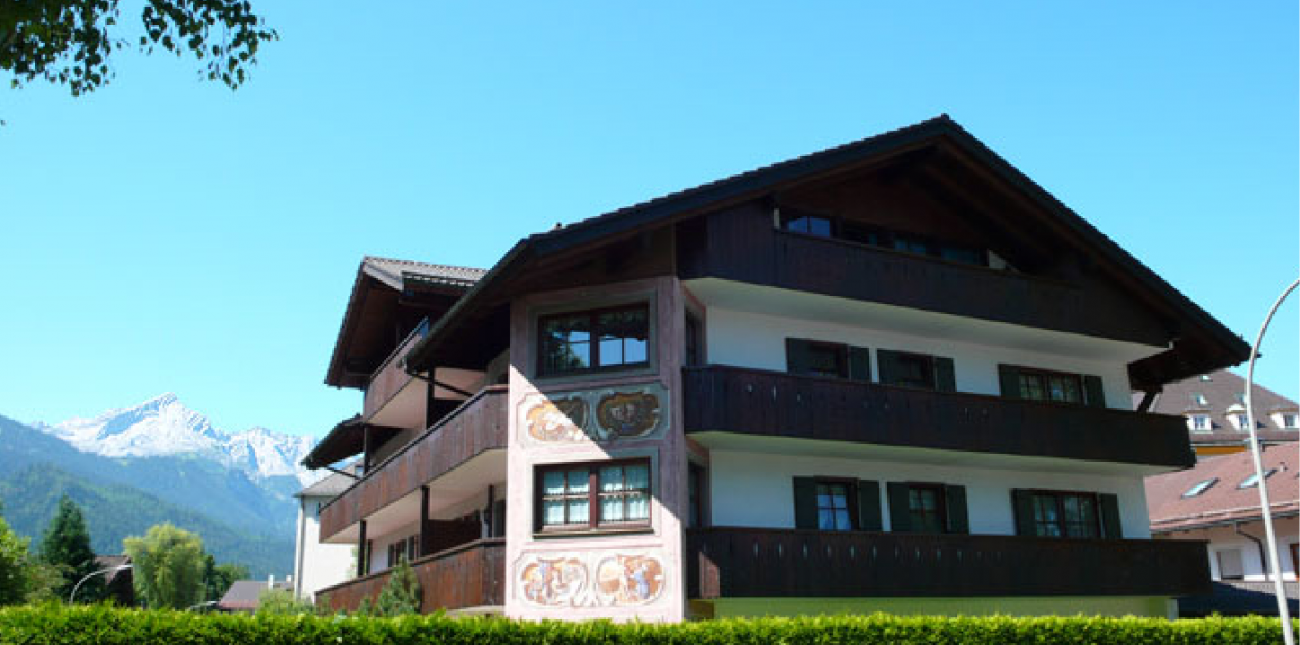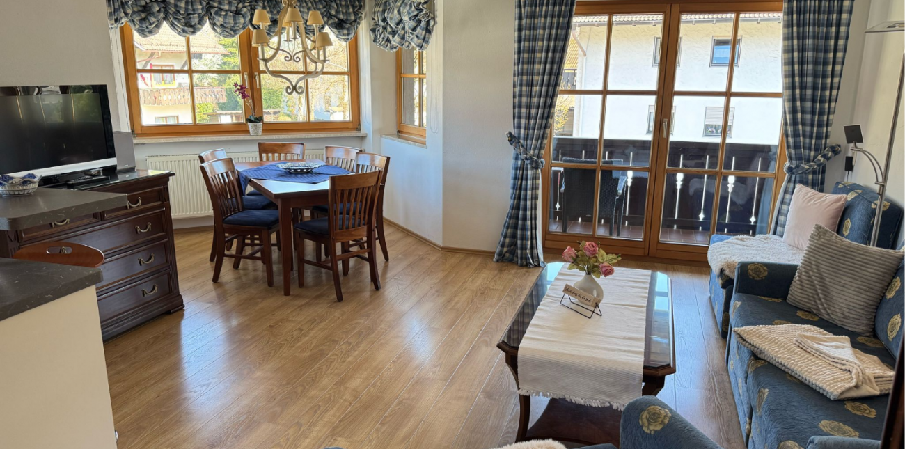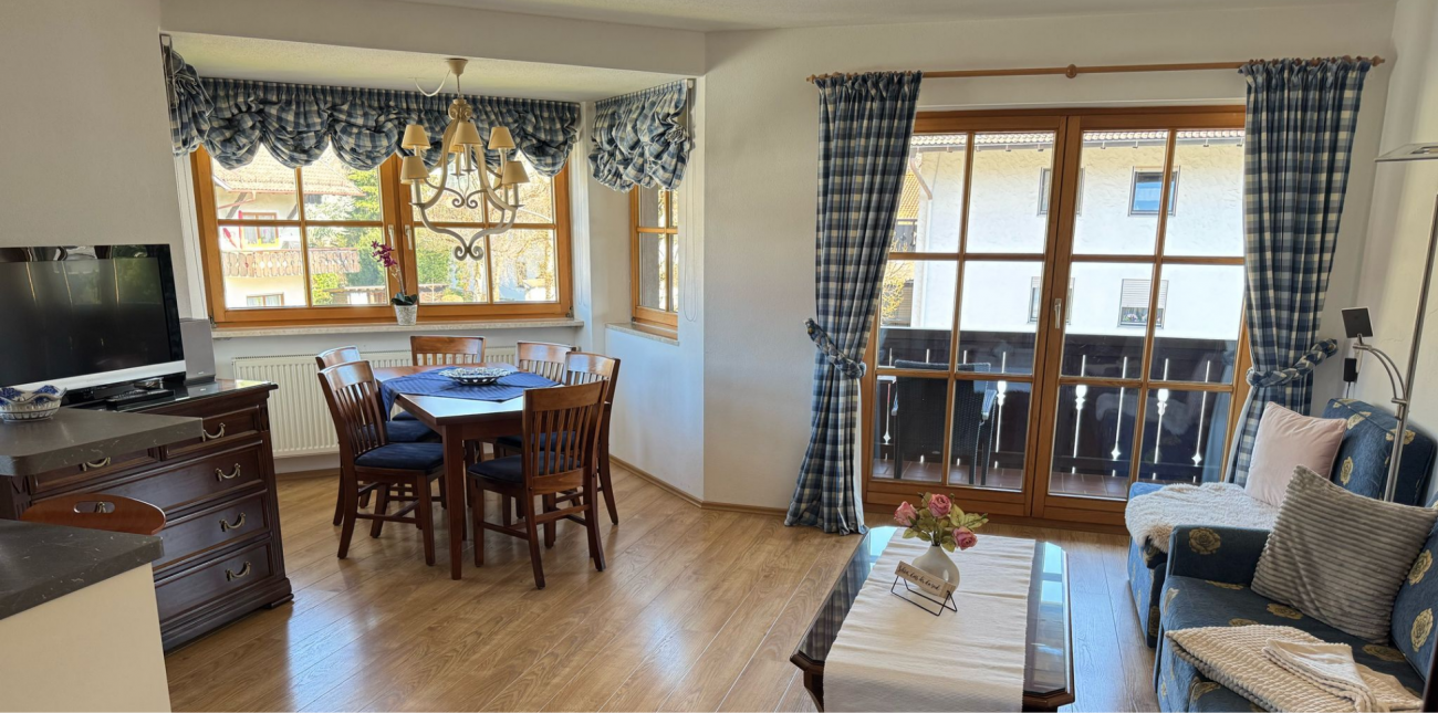 Unsere Ferienwohnung besticht durch Blick auf das traumhafte Bergmassiv. Die „Historische Ludwigstrasse“, Geschäfte, Gaststätten und die Bushaltestelle erreichen Sie zu Fuss. Schöne Wander- und Radwege beginnen in der Nähe.
