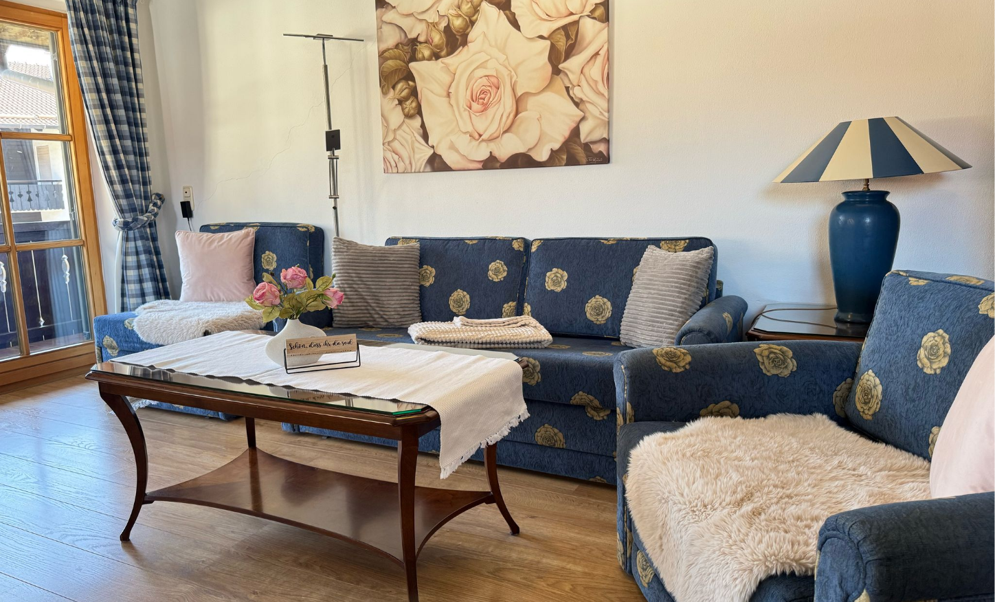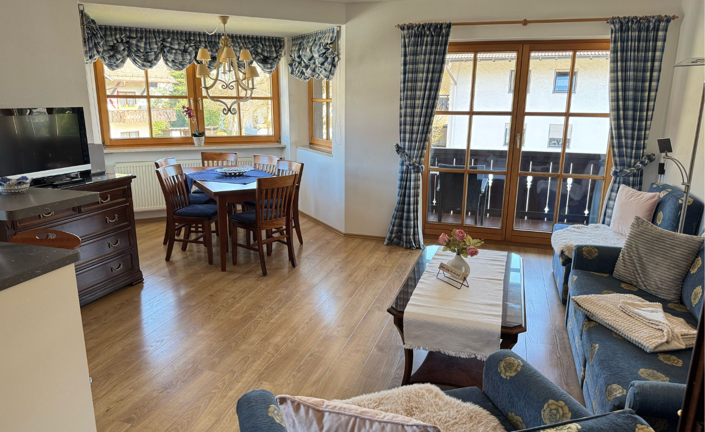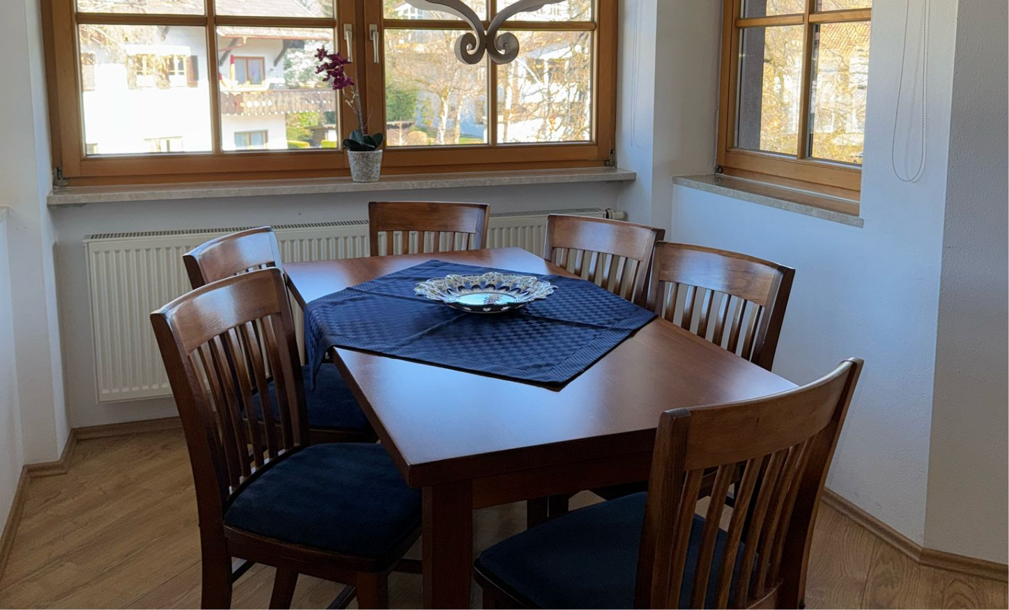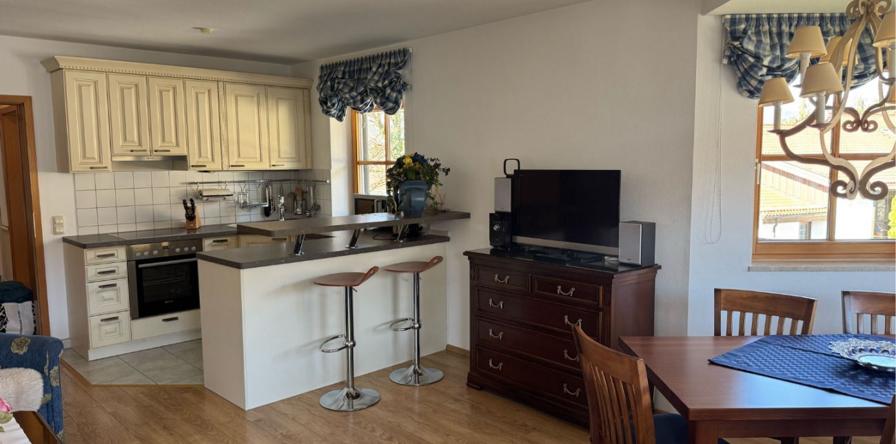 Unsere Ferienwohnung besticht durch Blick auf das traumhafte Bergmassiv. Die „Historische Ludwigstrasse“, Geschäfte, Gaststätten und die Bushaltestelle erreichen Sie zu Fuss. Schöne Wander- und Radwege beginnen in der Nähe.