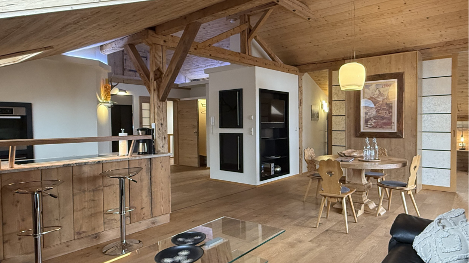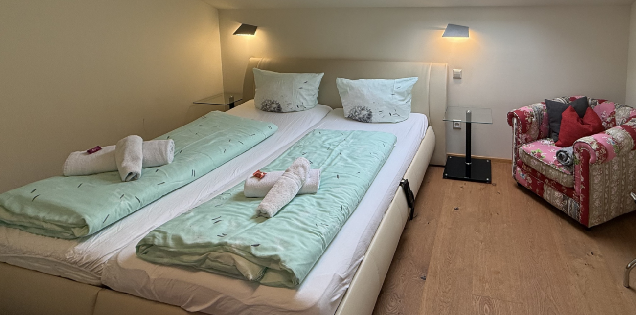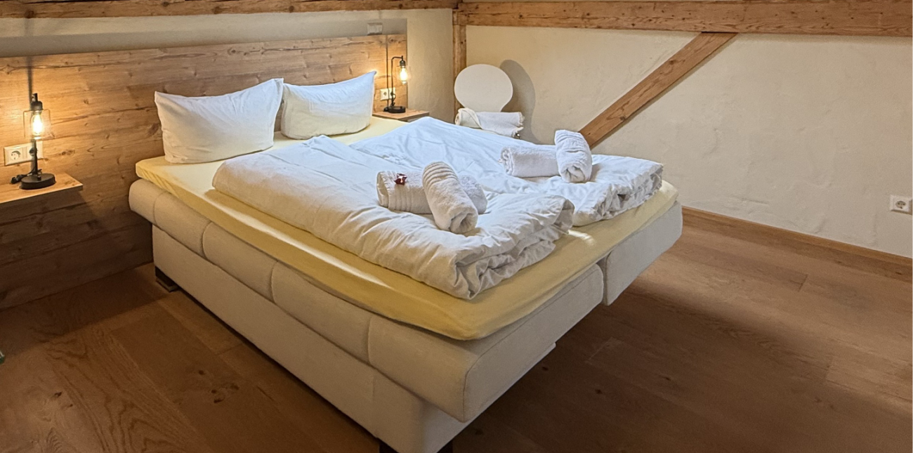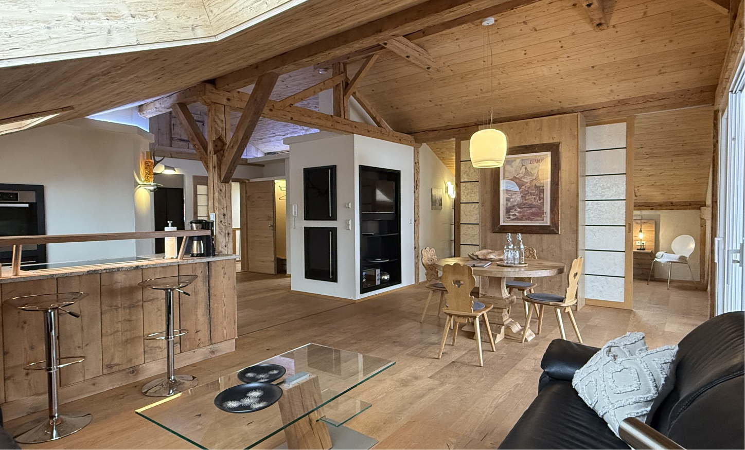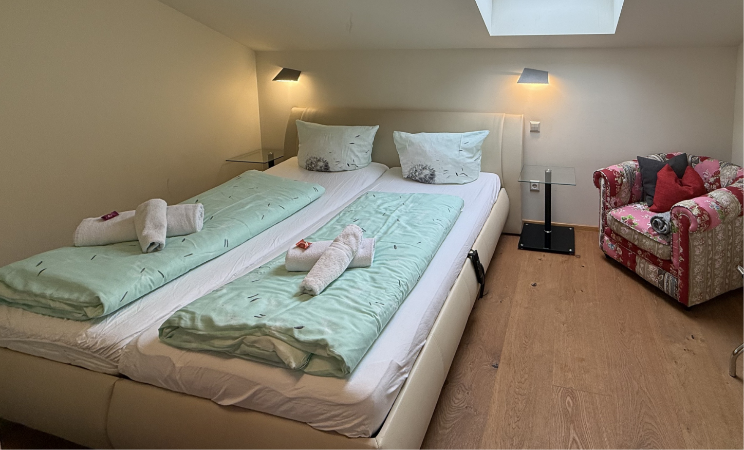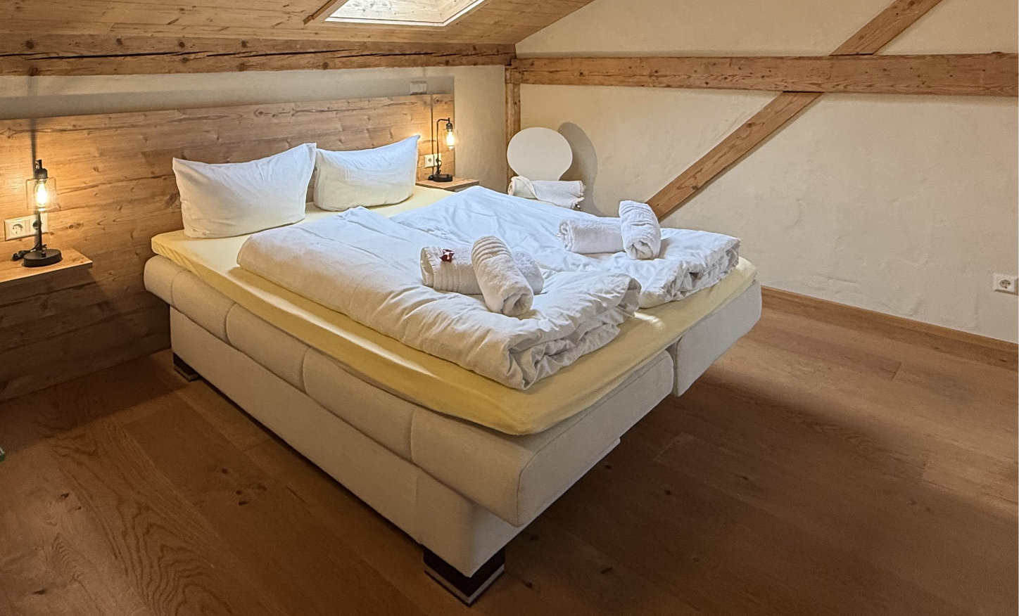 Kostenloses WLAN und Flat-TV mit Soundbar sind vorhanden, im Schlafzimmer 1 gibt es einen 2. Fernseher. Die Wohnung ist mit sehr hochwertigem Holzdielenfußboden mit Fußbodenheizung ausgestattet, alle Räume lassen sich einzeln temperieren. Die Dachfenster haben Regensensor und auf der Südseite elektrische Außenbeschattungen.