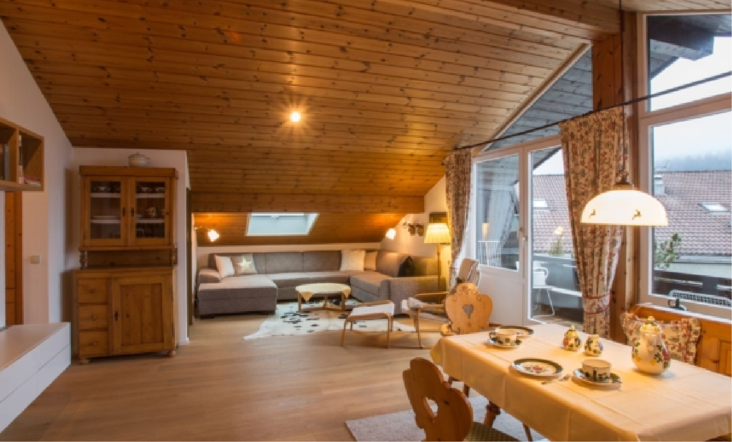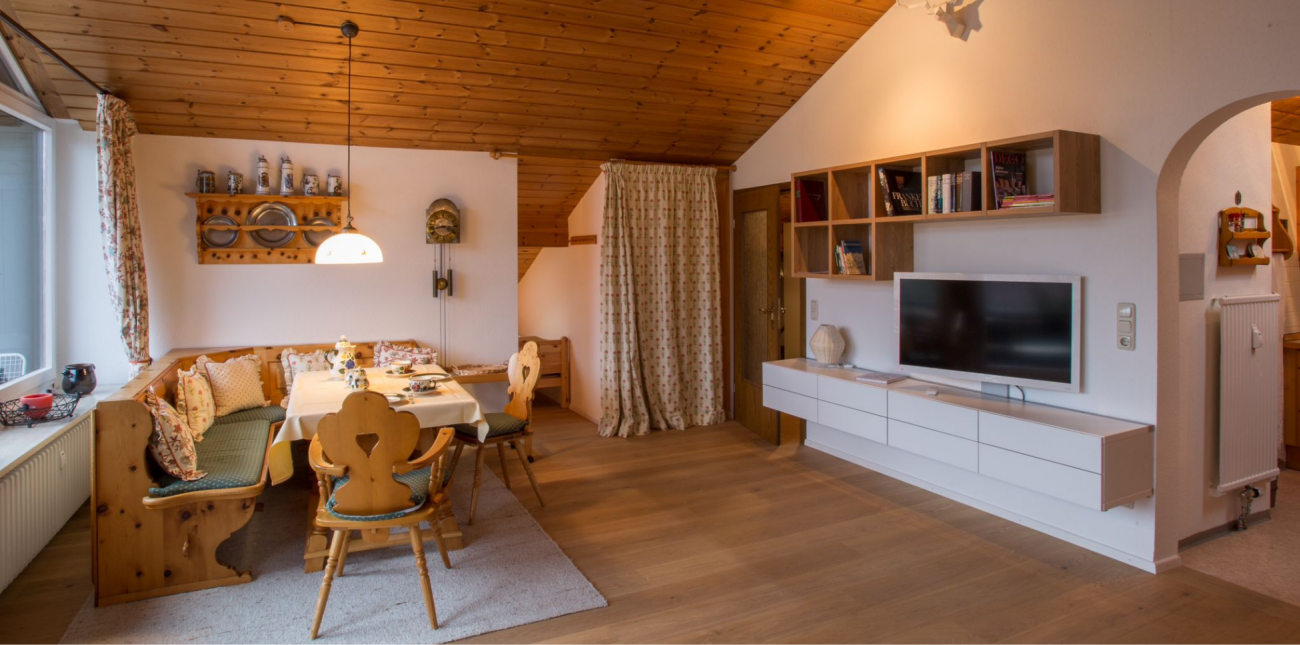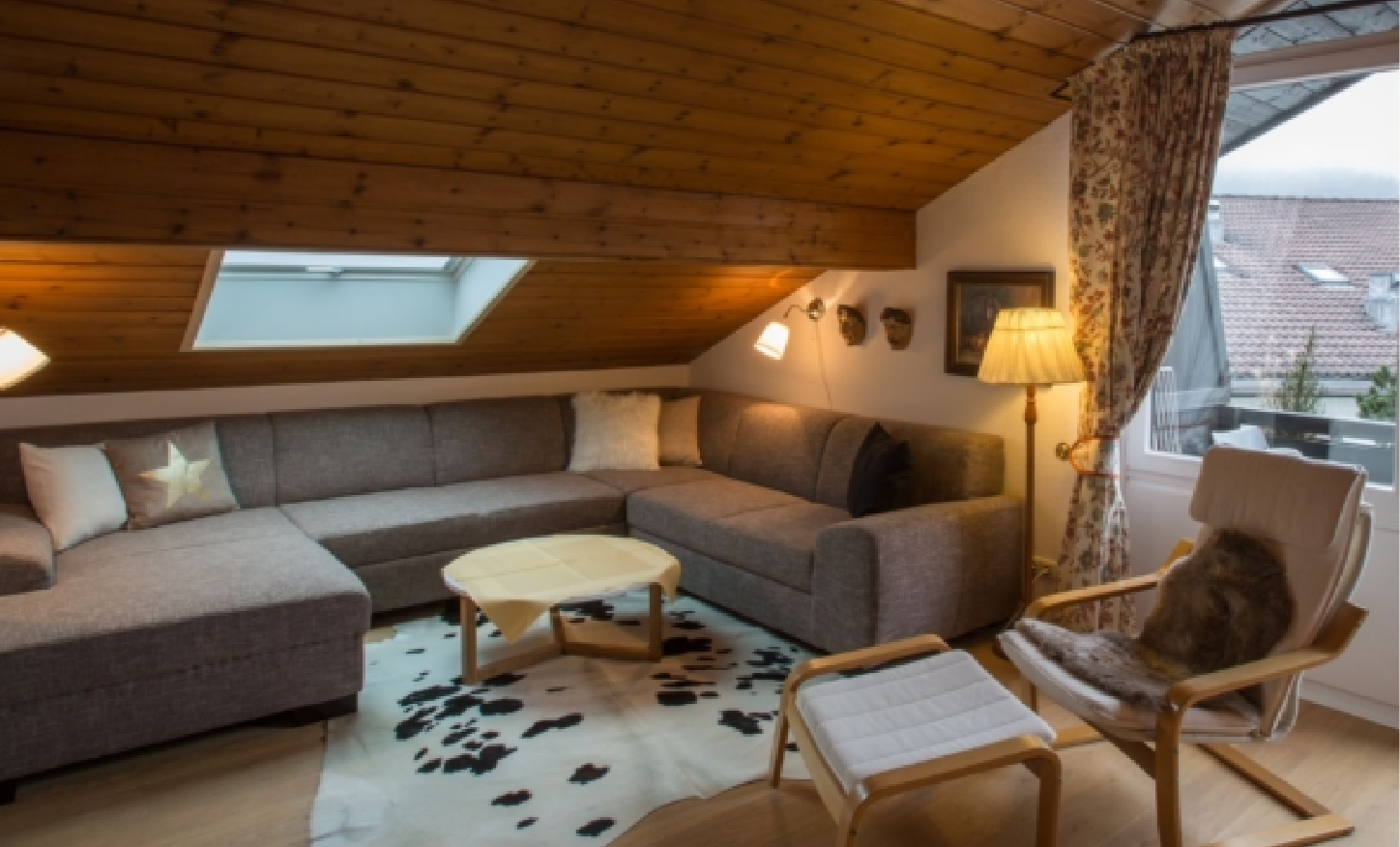 Erleben Sie erholsame Urlaubstage in unserer gemütlichen Dachgeschosswohnung mit besonderem Flair. Auf ca. 70 qm erwartet Sie eine liebevoll eingerichtete Unterkunft, die durch ihre warme Atmosphäre und den einzigartigen Ausblick begeistert. Der Balkon lädt dazu ein, den Blick über die beeindruckende Bergwelt schweifen zu lassen – mit direkter Aussicht auf den majestätischen Kramer sowie die idyllische Alte Kirche St. Martin. Die Wohnung verfügt über zwei gemütliche Schlafräume mit charmanten Dachschrägen, die für eine besonders behagliche Stimmung sorgen. Ideal für Paare, Familien oder Freunde, die Ruhe und Entspannung in den Bergen suchen.