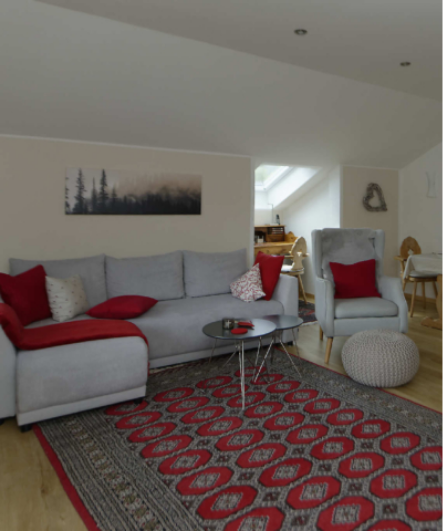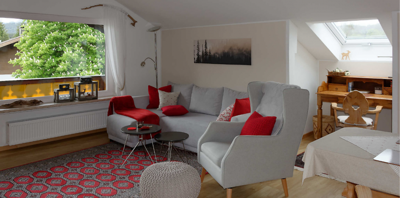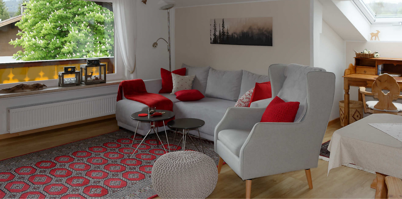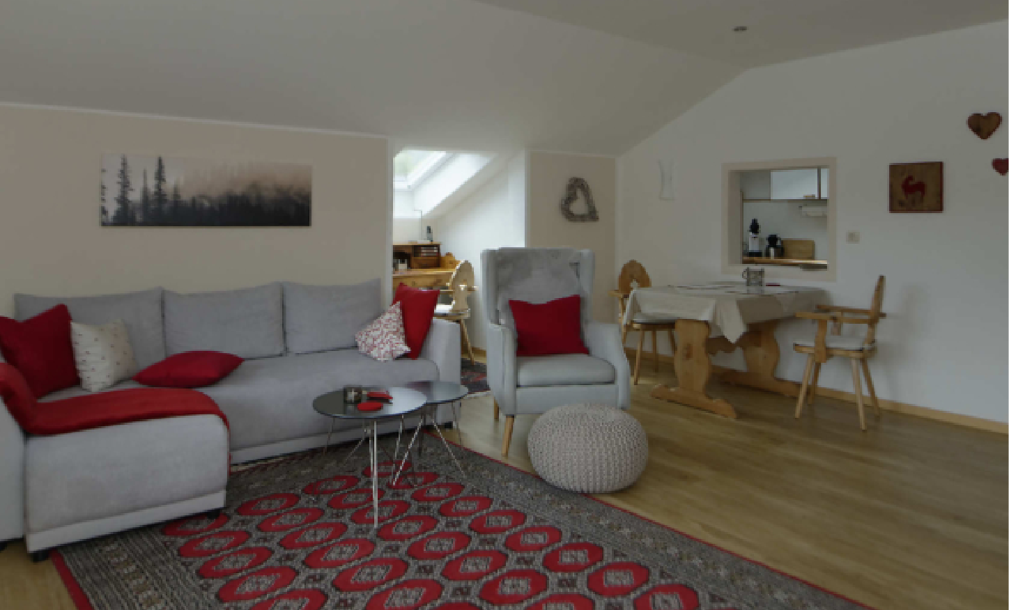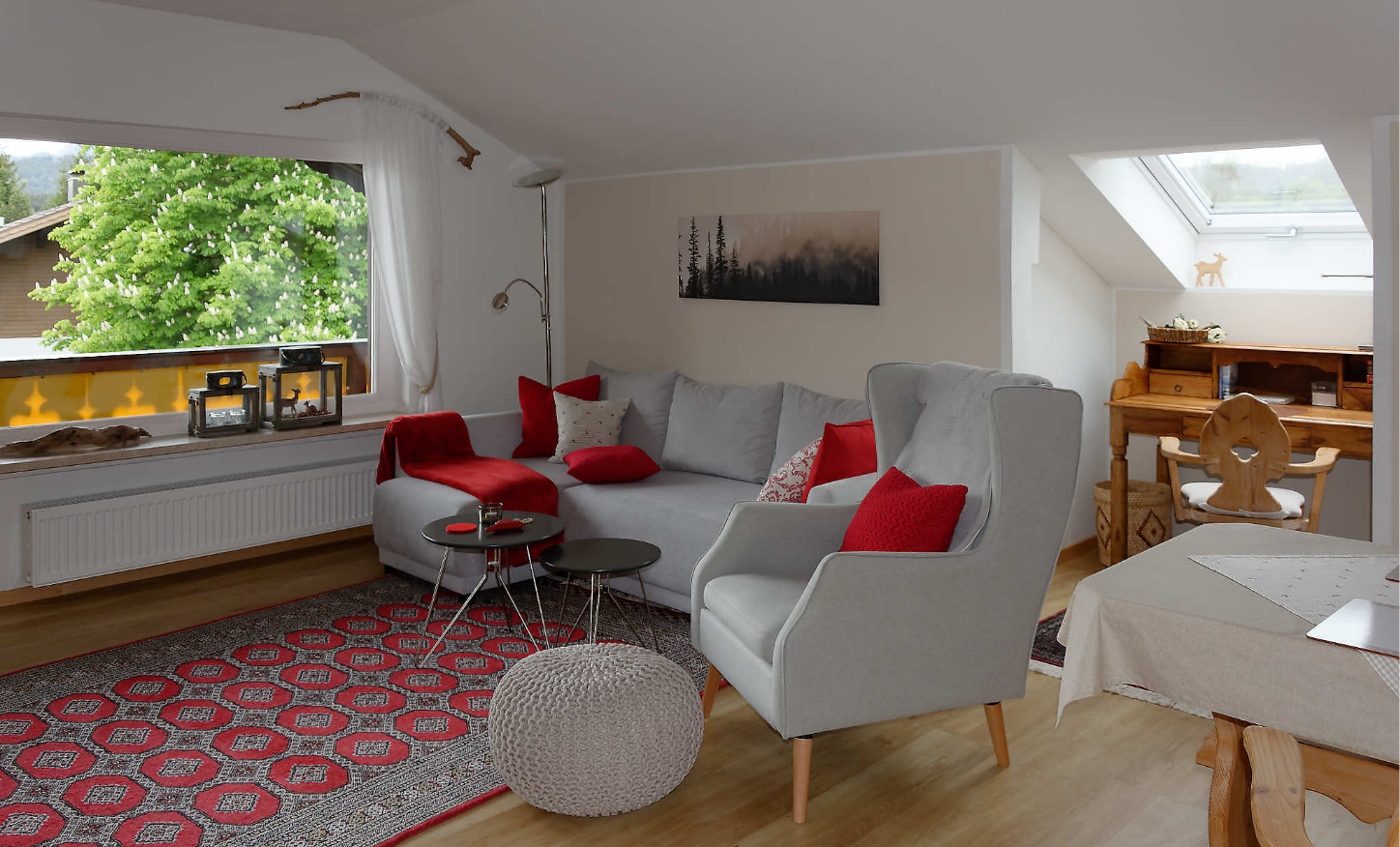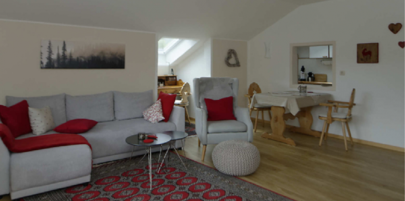 Sich bereits unmittelbar nach dem Einzug wohl zu fühlen, alle notwendigen Annehmlichkeiten des täglichen Lebens auf stilvollem Niveau vorzufinden, auf den Balkon zu treten und den herrlichen Blick auf Karwendel- und Wettersteingebirge zu genießen, ist Urlaub für den gehobenen Anspruch. Die Wohnung wurde 2017 größtenteils modernisiert. Neue Decken, neue Böden, dimmbare Beleuchtungen sowie teilweise neues Mobiliar. Eine neue Couch bietet Ihnen wohltuende Ruhe. Das neue Bett verfügt über elektrisch verstellbare Roste, die nahezu jede ideale Entspannungsposition ermöglichen. Auch das neue zweite Fernsehgerät im Schlafzimmer kann hier zur Entspannung beitragen.